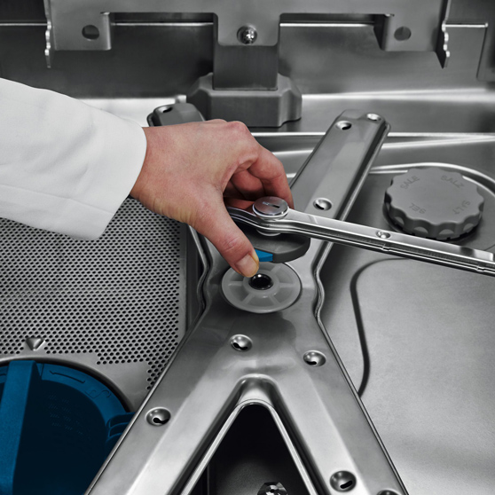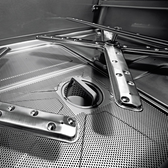 Pour vous faciliter le travail, les deux bras de lavage et de rinçage peuvent être retirés en une seule prise grâce au système CLIP-IN. Une fois le nettoyage terminé, le dispositif peut également être remis en place en un simple clic.