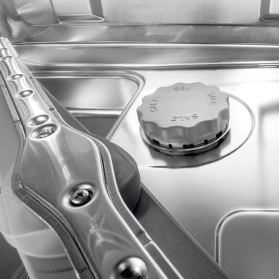 L'adoucisseur d'eau intégré élimine de l'eau les minéraux qui contribuent à sa dureté. Vous évitez ainsi les dépôts de tartre qui peuvent conduire à un allongement de la durée de programmes, à l’entartrage des résistances et à la dégradation des résultats de lavage.