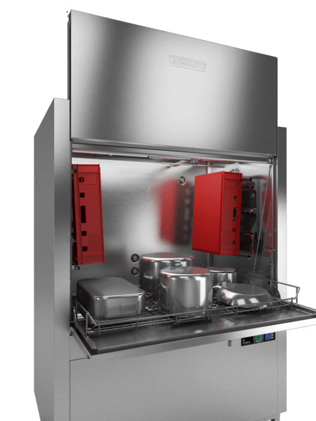 - Grande capacité grâce au système de lavage latéral : jusqu'à 8 bacs GN 1/1 ou 5 bacs Euronorm.
